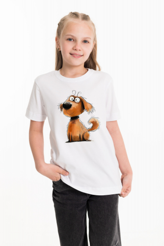 Футболка детская с коротким рукавом и округлым вырезом горловины, оформленным планкой. Спереди на футболке принт. Хлопок 100%