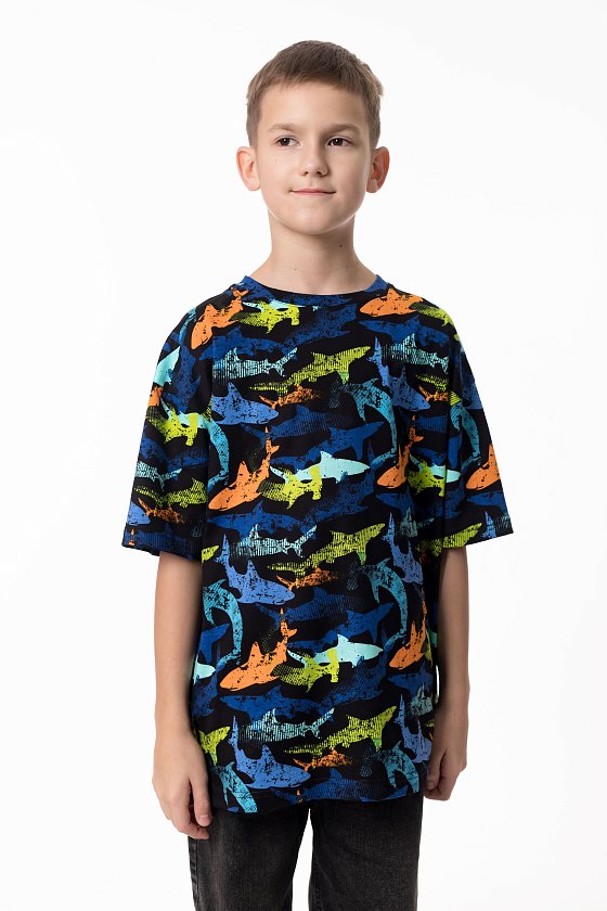Детская футболка выполнена из мягкого хлопкового полотна, приятного к телу и комфортного в носке. Модель свободного кроя с круглым вырезом горловины и рукавами длиной до локтя обеспечивает удобство и свободу движений. Спущенная линия плеча придаёт изделию современный и непринуждённый вид, делая футболку отличным вариантом для повседневного гардероба ребёнка.