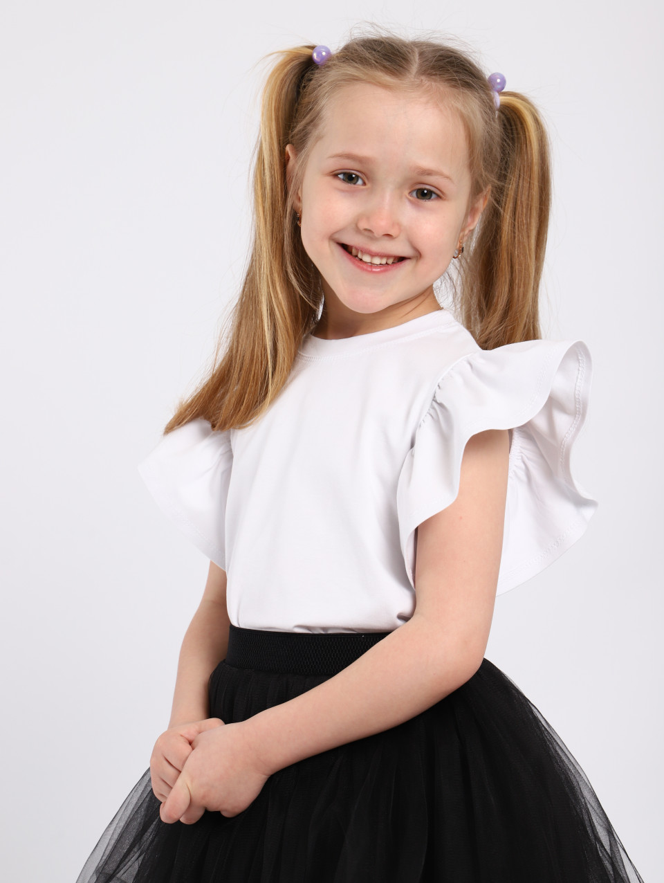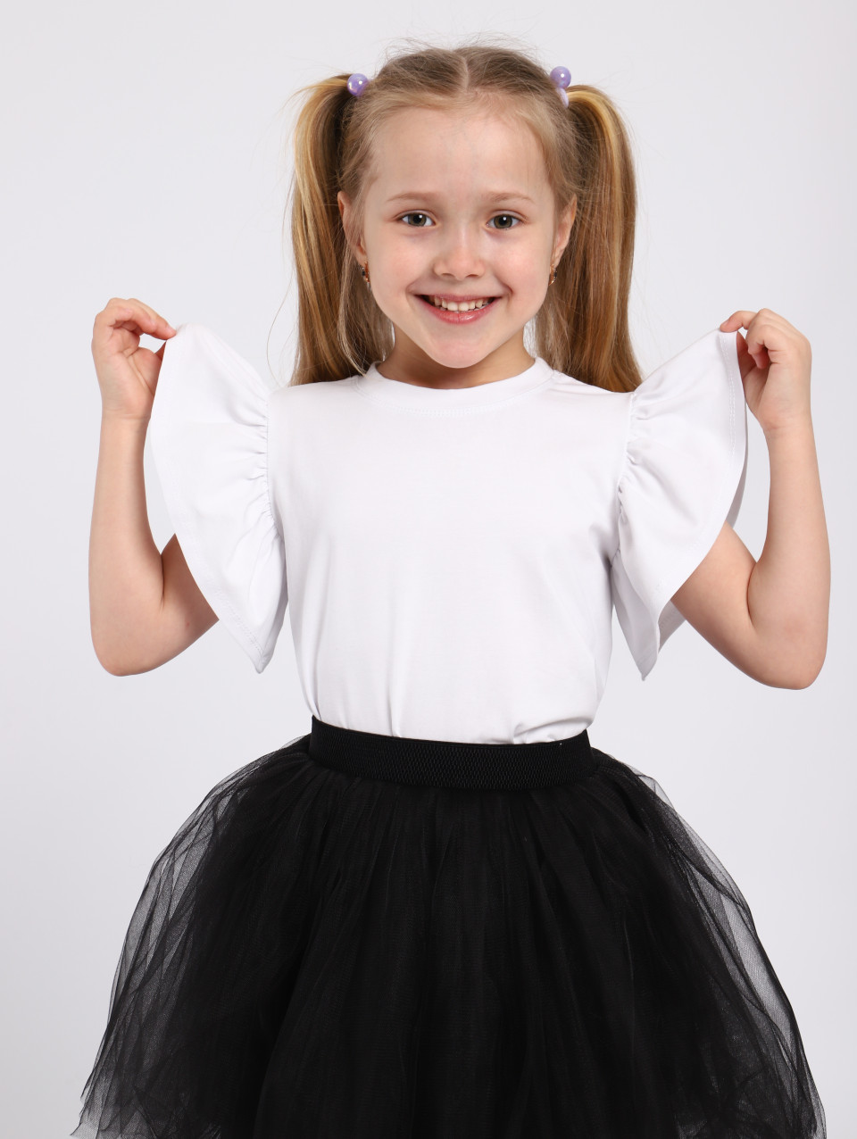 Представляем милую футболку с рукавами-крылышками, которые придают образу нежности и игривости.Она станет незаменимым элементом гардероба для самых разных случаев – от повседневных прогулок до активных занятий. Идеально подходит для детского сада, школы, а также станет стильным выбором для отдыха дома или на даче, поездок на море и активных игр.