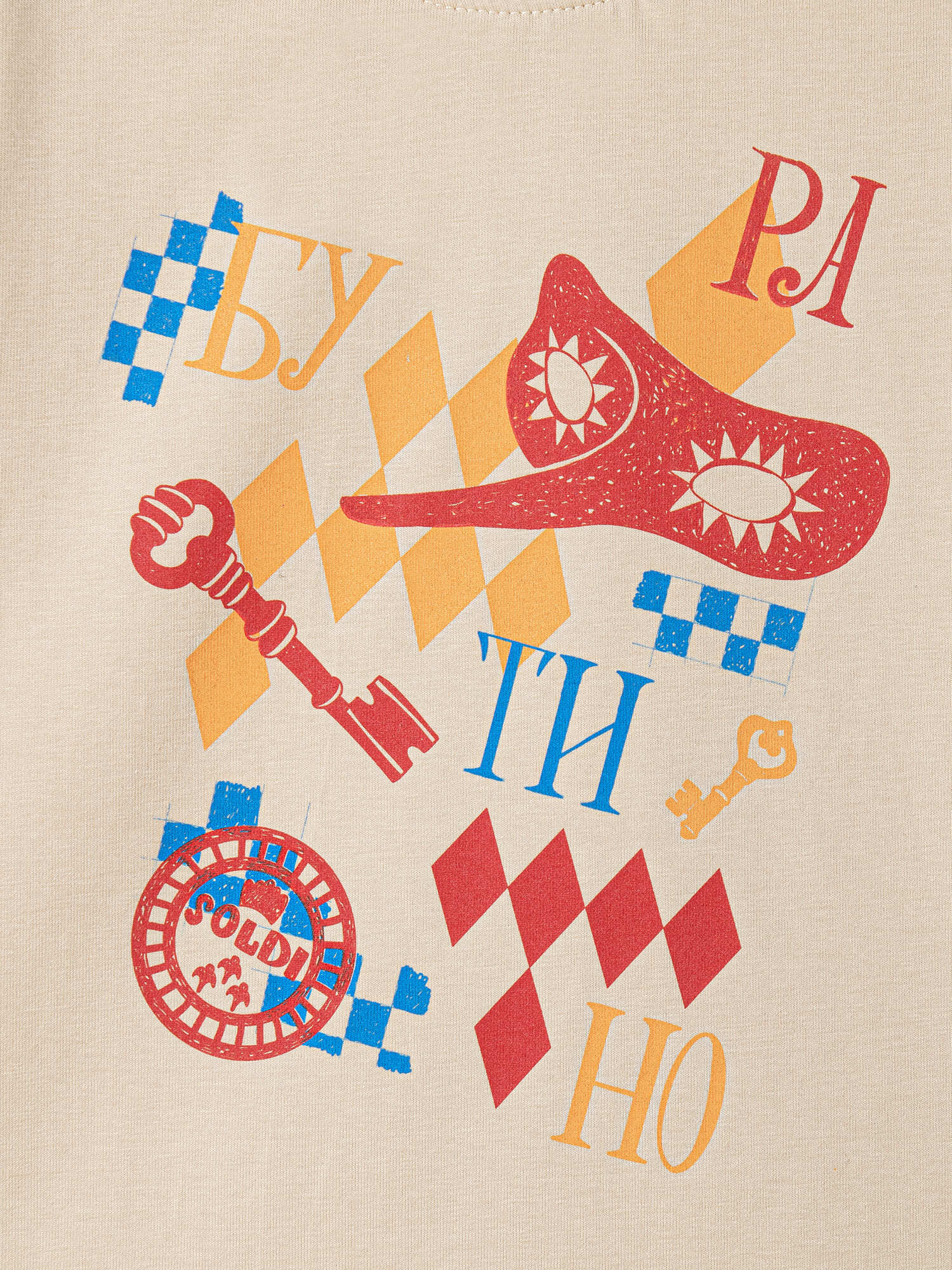 Футболка отлично сочетается с джинсами, шортами, юбками или леггинсами – легко собрать комплект для детсада, прогулки или поездки к бабушке.