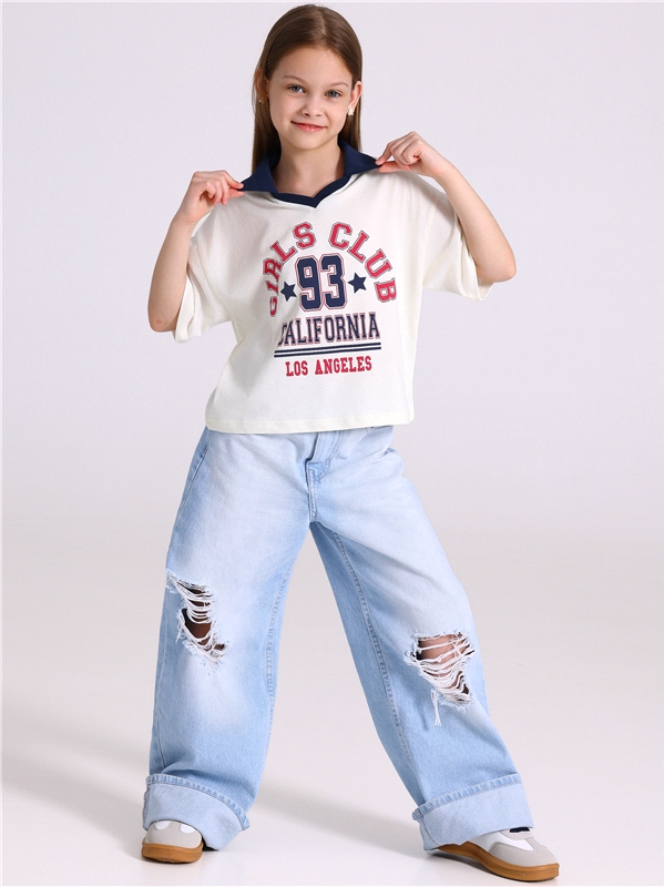 кулир / хлопок 100% сливки1+темно-синий77 / - / Клуб девчонок