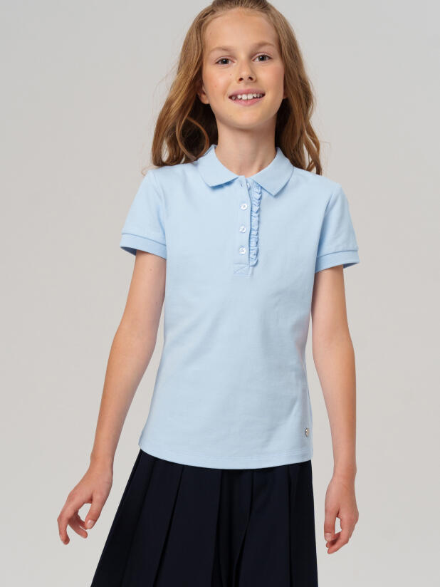 Такое голубое поло для школы с коротким рукавом — базовый элемент гардероба на каждый день. Оно отлично сочетается с юбками, сарафанами, брюками и джемперами от PlayToday. Подходит для учебы, школьных мероприятий и повседневных прогулок.
