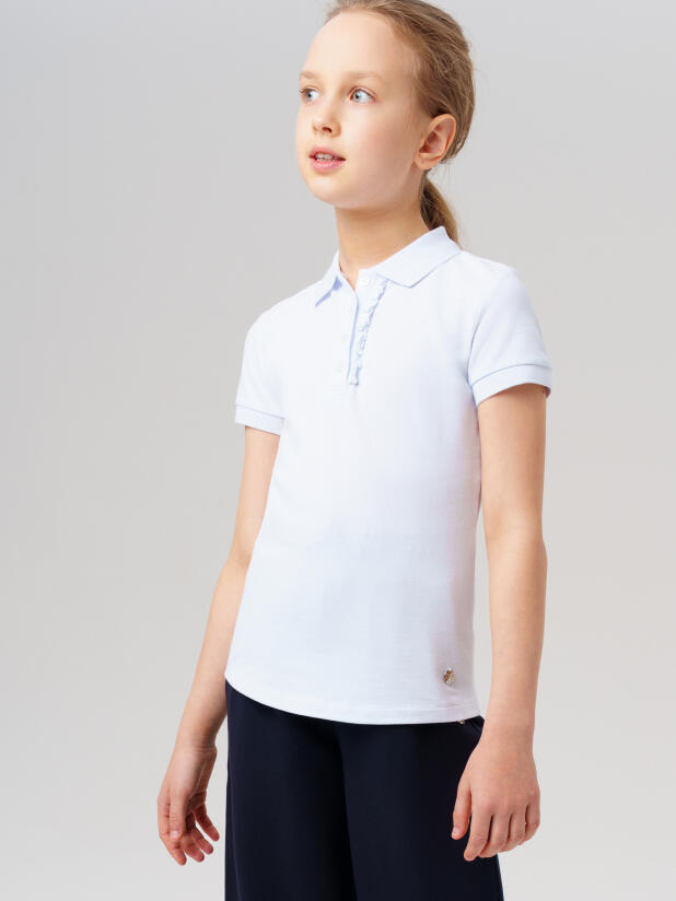 Такое белое поло для школы с коротким рукавом — базовый элемент гардероба на каждый день. Оно отлично сочетается с юбками, сарафанами, брюками и джемперами от PlayToday. Подходит для учебы, школьных мероприятий и повседневных прогулок.