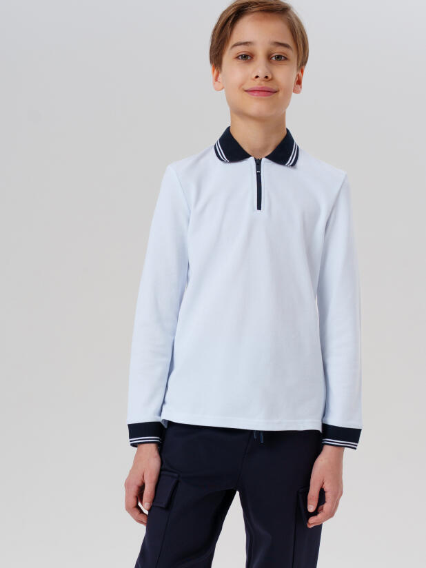 Классическая белая футболка поло с длинным рукавом для мальчика подростка от PlayToday — стильная и практичная основа школьного гардероба. Аккуратный крой, строгий внешний вид и дышащий хлопковый трикотаж обеспечивают комфорт в течение всего учебного дня.
