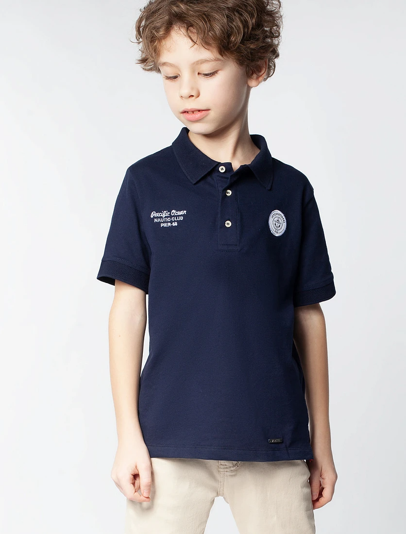 Футболка-Поло для мальчиков темно-синего цвета с классической горловиной на пуговицах выполнени из мягкого хлопкового трикотажа пике. Приятный на ощупь материал из отборных волокон, хорошо пропускает воздух, поэтому в модели будет комфортно в течение всего дня. Воротник и манжеты связаны из хлопковых нитей. Наличие эластана в составе изделия способствует эластичности и меньшей сминаемости. Спереди – вышивка в морской тематике, внизу металлический логотип бренда.