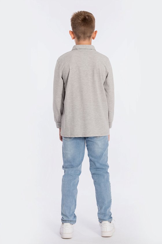 Футболка-поло с длинным рукавом из однотонного пике. Воротник с застёжкой на три пуговицы. С левой стороны размещена вышивка.