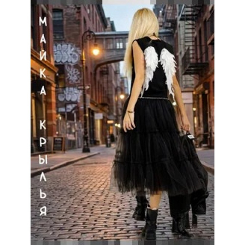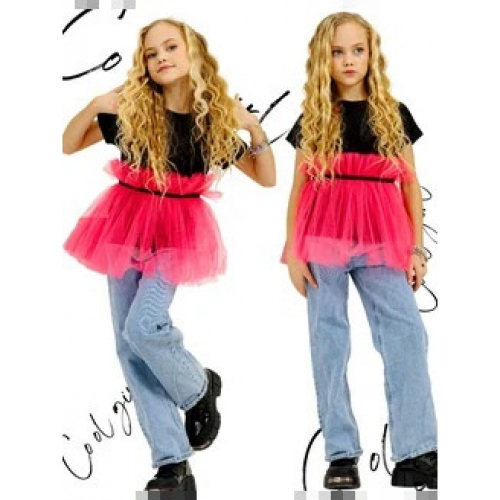 Представляем стильную футболку с пышной фатиновой отделкой— сочетание комфорта и трендового дизайна.