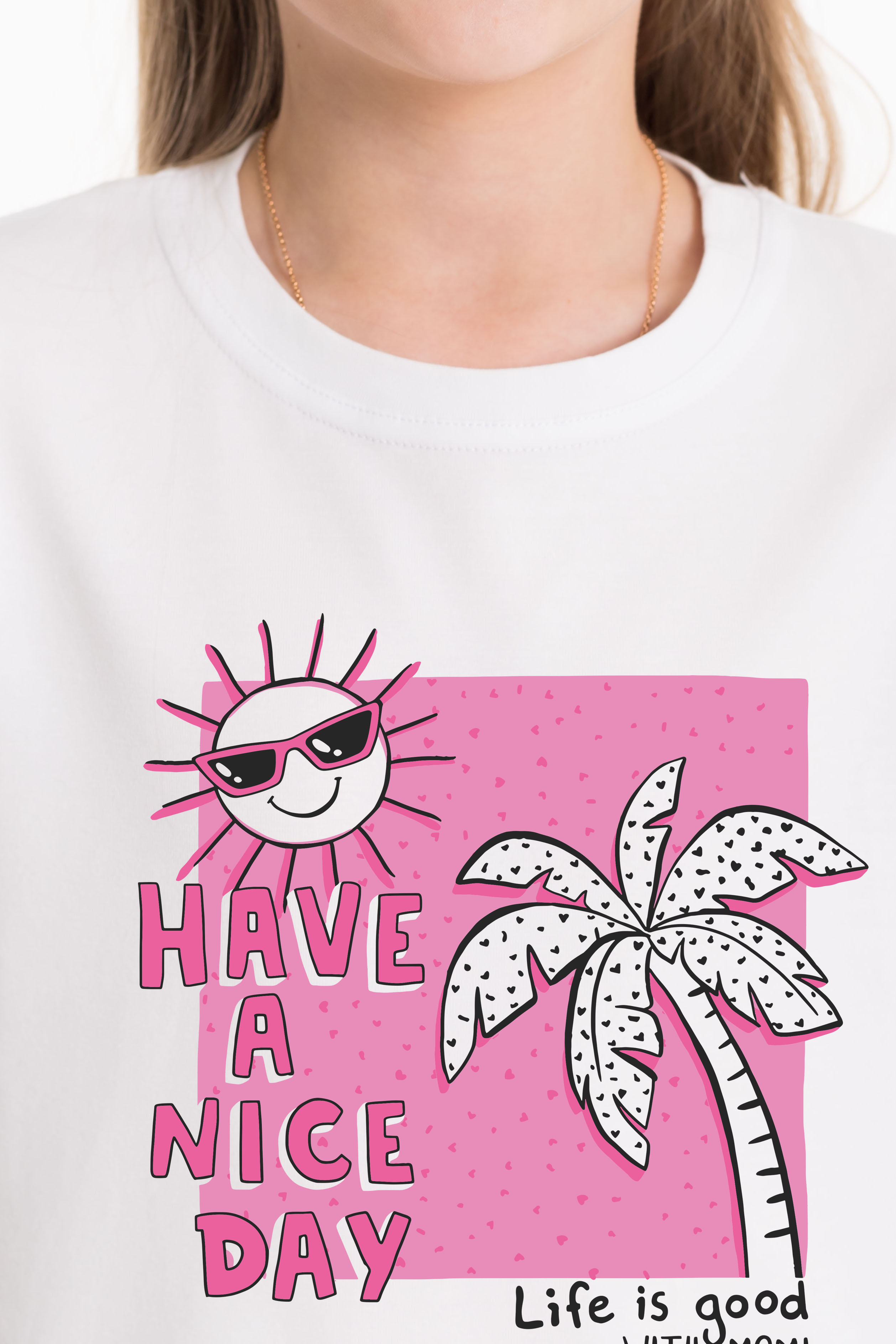 Круглый вырез горловины, втачной рукав, на полочке принт. Хлопок 95% Лайкра 5%