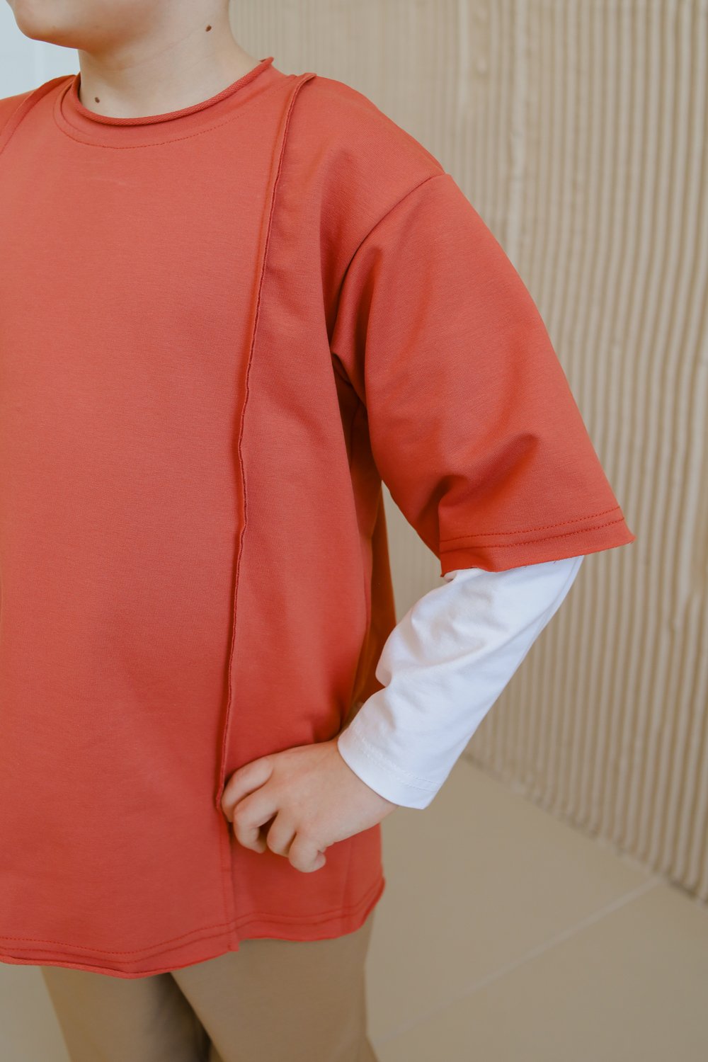 Футболка со швами наружу коралл