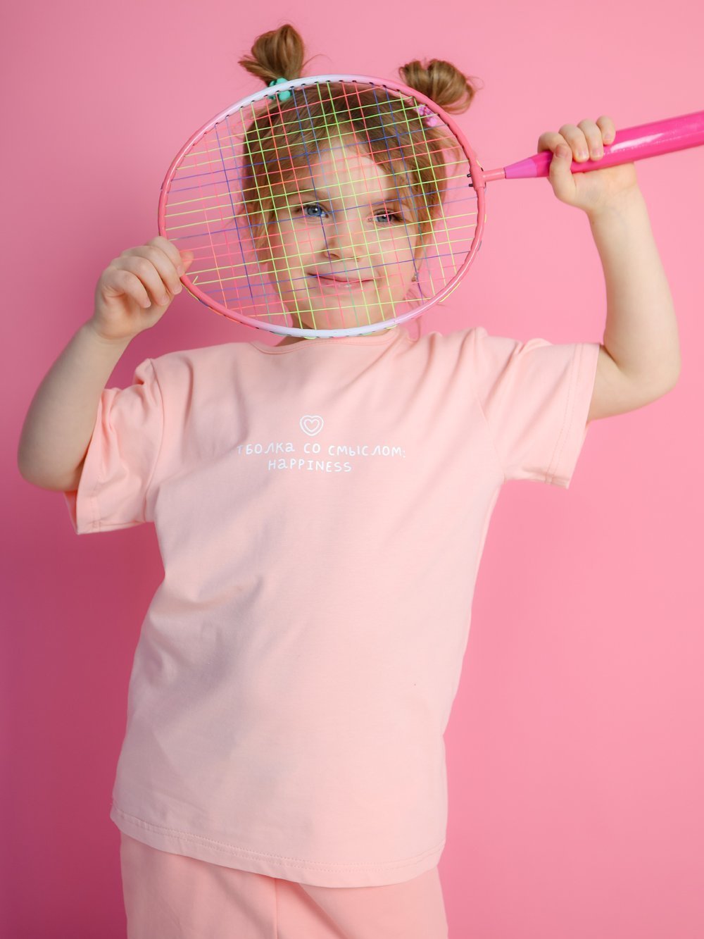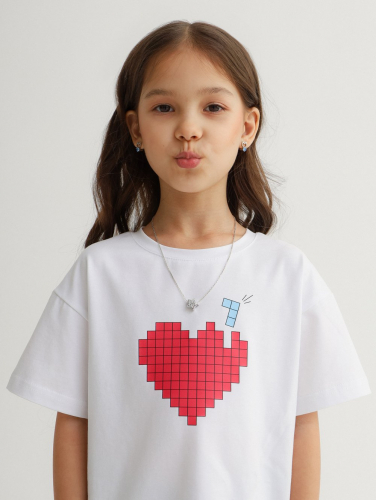 Футболка умеренного объема с округлым вырезом горловины и принтом на полочке.
