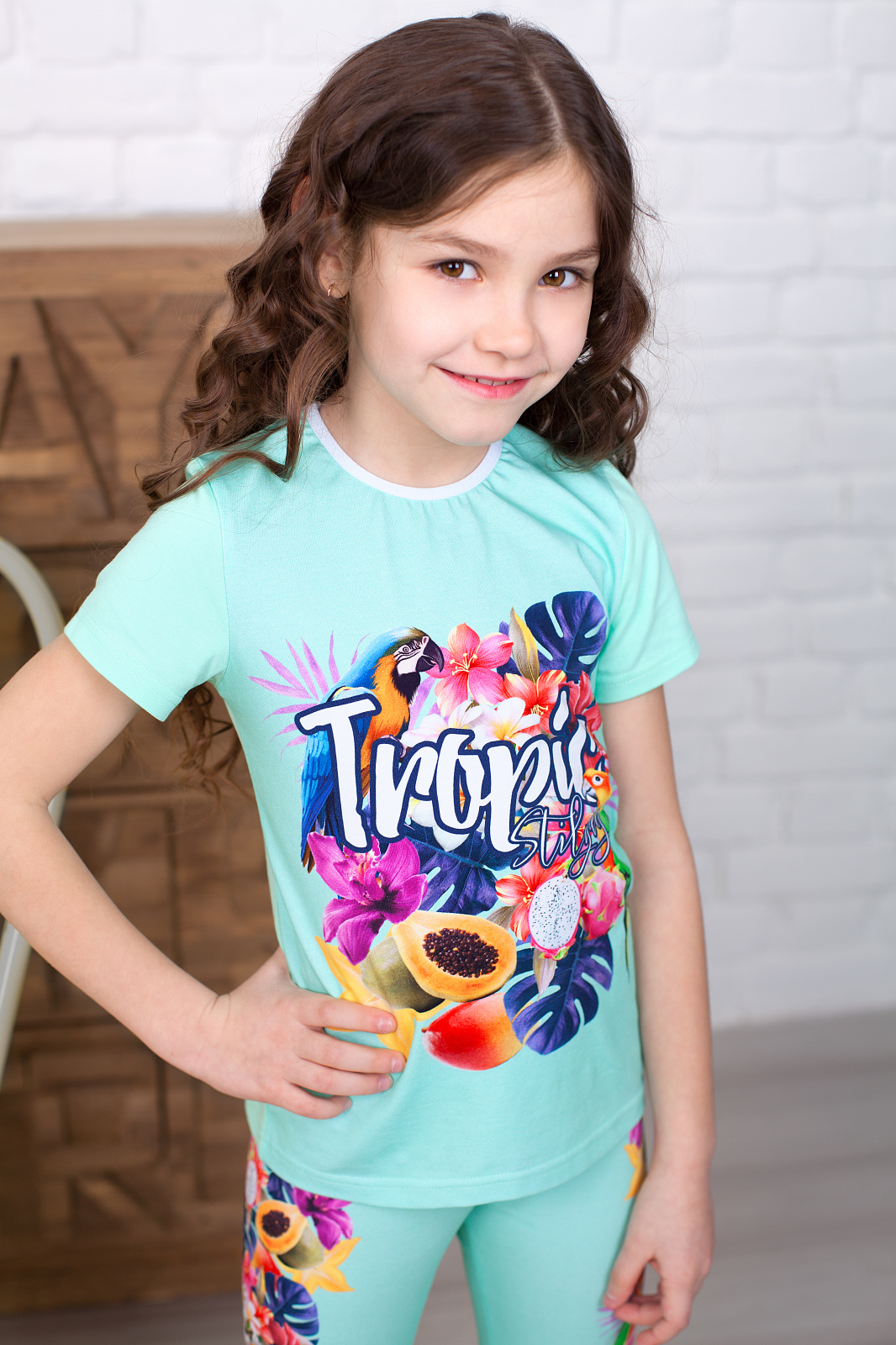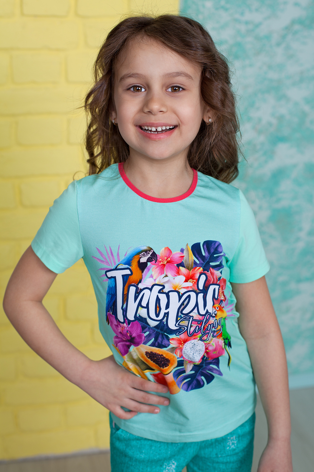 Футболка необходимая вещь в девичьем гардеробе.Изделие украшено дизайнерским принтом.Рекомендовано на каждый день.