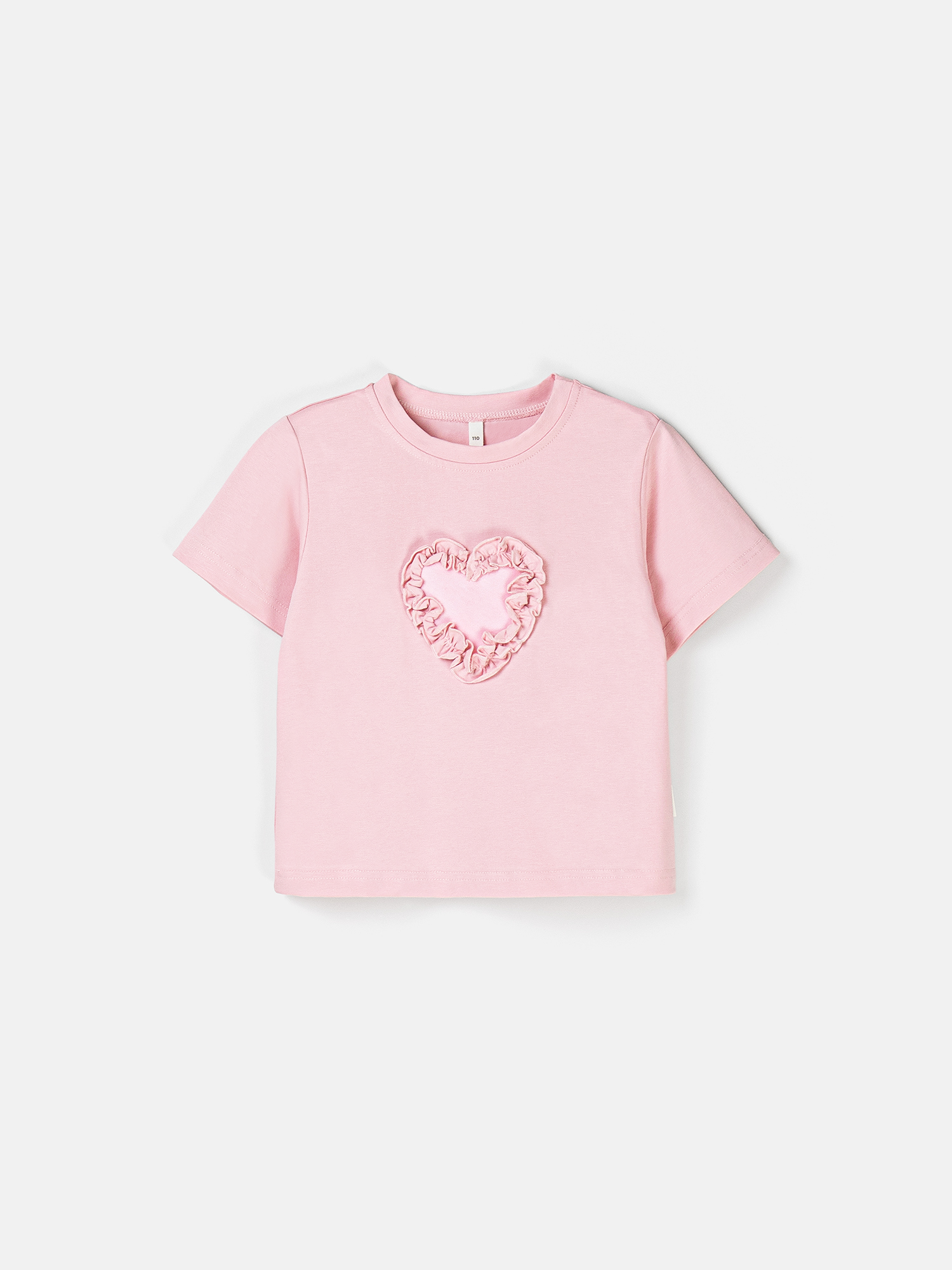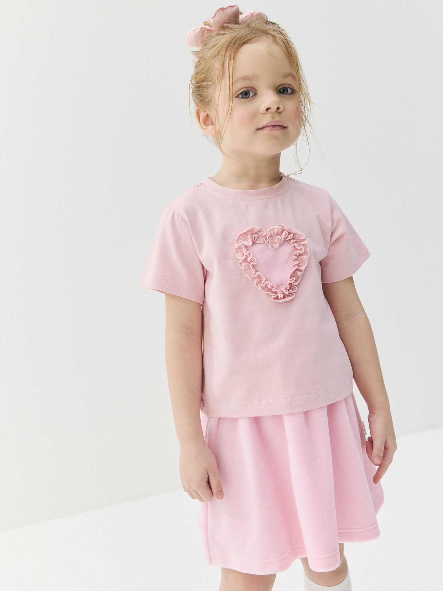 Комфортная футболка полуприталенного силуэта с объемным велюровым сердцем.