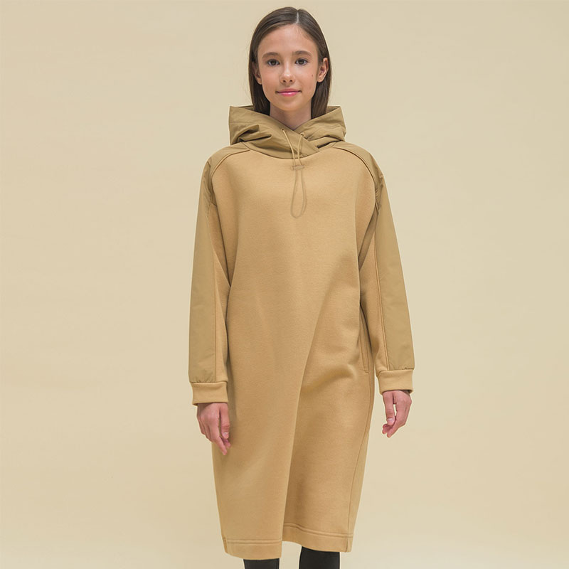 Состав: 72%хлопок 28%полиэстер, вставка: 100%полиэстерОписание: Детское платье-худи длиной ниже колена для девочки. Худи с капюшоном выполнено из футера с начёсом и дополнено элементами из гладкой курточной ткани. Сочетание материалов разной фактуры в одном изделии — один из наиболее актуальных трендов сезона. Капюшон и вставки на рукавах из курточной ткани — практичное решение, девочка не промокнет под дождём. Вдоль вставок кант из мягкой хлопковой ткани. Туника для девочек модного оверсайз-силуэта со спущенным плечом подарит ребёнку свободу движений и ощущения комфорта и уюта. На капюшоне предусмотрена регулировка эластичным шнуром со стопперами.Двойной капюшон - швы закрыты, смотрится аккуратно. Манжеты рукавов из основной ткани. В боковых швах карманы — удобно пользоваться. Худи однотонное, без принта. За ним просто ухаживать. В составе основной ткани преобладает высококачественный хлопок — платье приятно на ощупь и великолепно попускает воздух, давая коже ребёнка дышать. Благодаря полиэстеру толстовка легко стирается и быстро сохнет, сохраняет отличную форму надолго. Вставки выполнены из материала, в составе которого нейлон и полиэстер — они прочные, не выгорают и не растягиваются - актуальный тред. Платье спортивное выполнено в зелёном цвете (трендовый оттенок хаки). Платье-худи утеплённое подходит для девочек дошкольного и младшего школьного возраста (до 11-12 лет). Его можно носить в детский сад, на прогулки, на отдых, дома. Худи с капюшоном идеально для круглогодичной носки, но особенно незаменимо осенью, весной (демисезон) и зимой. Чудесный подарок дочери, внучке или сестре на Новый год и любой другой праздник.