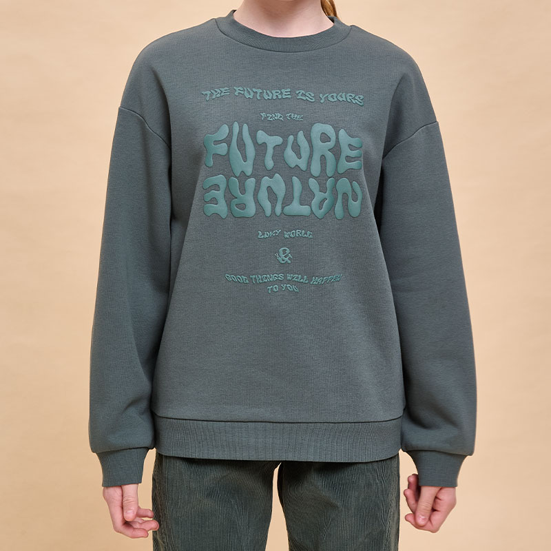 Состав: 66%хлопок 34%полиэстерОписание: Свитшот детский для девочки. Свободная толстовка со спущенным плечом подарит ребёнку комфорт и станет стильным дополнением гардероба. Объёмный свитшот — актуальный модный тренд. Манжеты, отделка горловины и низа изделия выполнены из эластичной рибаны (ткани в рубчик). Она не растягивается, отлично сохраняет форму, при этом ребёнку удобно надевать и снимать свитшот. Модель неприхотлива в уходе. Свитшот с принтом по переду выполнен из футера с начёсом. Модный мягкий пуфф-принт приятный на ощупь, мягкий и эластичный, великолепно переносит частые стирки. Надписи переводятся: «будущее за тобой», «найди будущую природу», «счастливый мир и хорошие вещи произойдут с тобой». В составе ткани преобладает высококачественный хлопок — толстовка приятна на ощупь и прекрасно пропускает воздух. Полиэстер помогает сохранить цвет и первозданный внешний вид надолго. Кофта выполнена в в универсальном цвете, который легко сочетать с любыми брюками, джинсами. Оверсайз-свитшот подходит как для маленьких девочек, так и для девочек-подростков. Джемпер идеален для детского сада, прогулок, активного отдыха, дома. Толстовку с начесом можно носить круглый год. Помните о правильном уходе за изделием: рекомендуется стирать при температуре не выше 30 °C, без предварительного замачивания, с изнанки. Это поможет сохранить качество и цвет свитшота на длительное время. Не забывайте о выборе правильного размера. Используйте таблицу размеров на фотографии, чтобы выбрать подходящий вариант для вашей девочки. Обратите внимание, что цвет товара на экране вашего устройства может отличаться от реального.