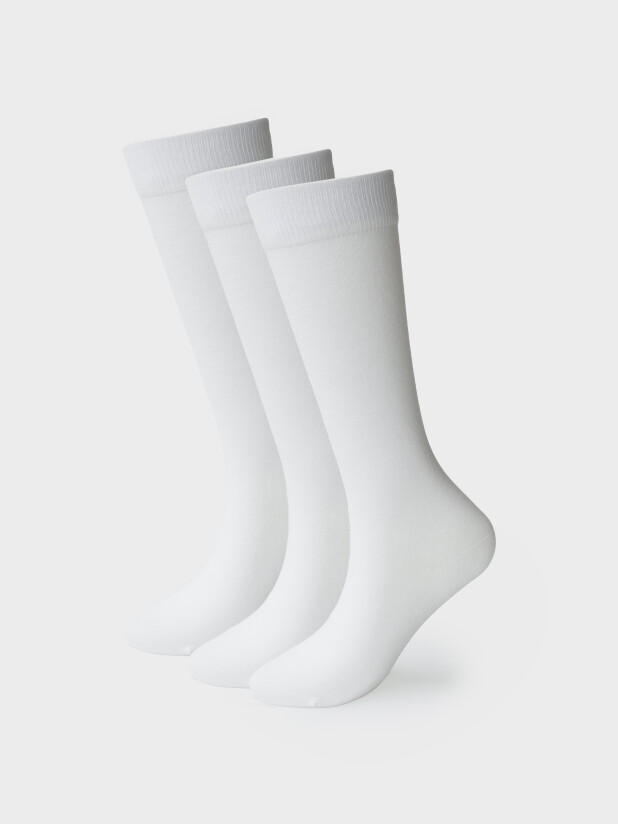 Такие трикотажные белые гольфы для подростков — идеальный вариант как под классическую школьную форму, так и под повседневные образы.
