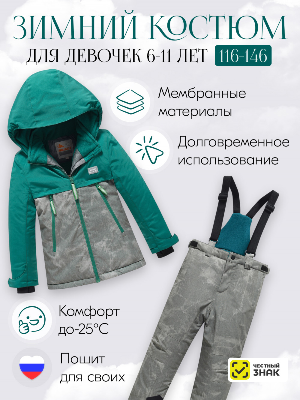 Представляем зимний горнолыжный костюм для девочки, который идеально сочетает стиль и функциональность! Этот комплект, состоящий из куртки и полукомбинезона, разработан для активных зимних приключений и обеспечивает максимальный комфорт на склонах.