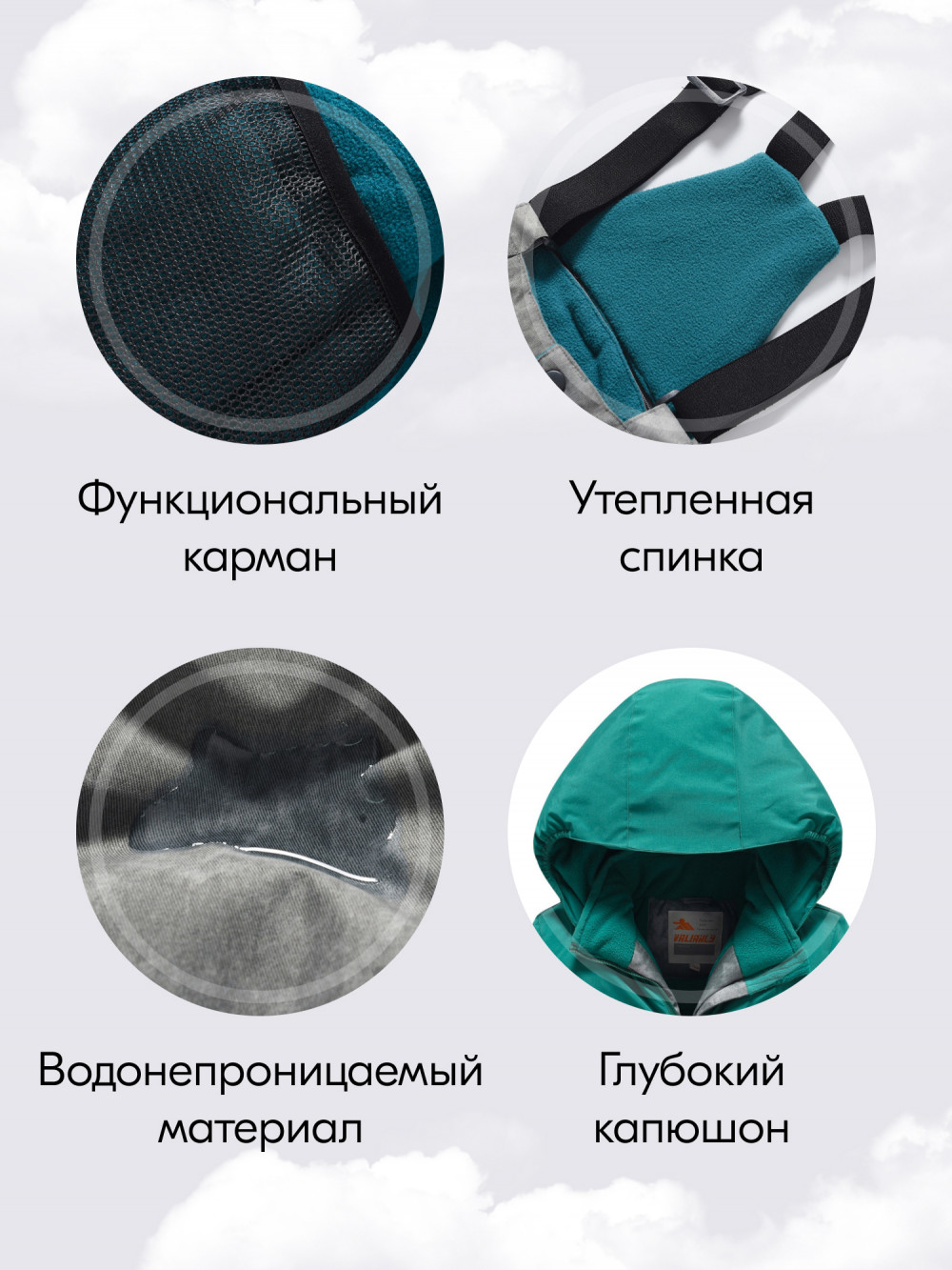 Особенности модели: family look, ветрозащита, водоотталкивающий материал, гипоаллергенный материал, дышащий материал, вареный эффект