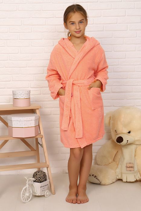 Халат детский махровый Элит с капюшоном, 028-Персиковый