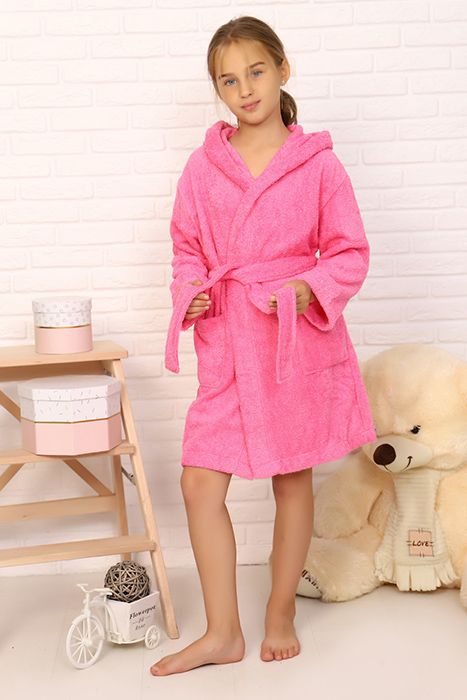 Халат детский махровый Элит с капюшоном, 105-Ярко-розовый