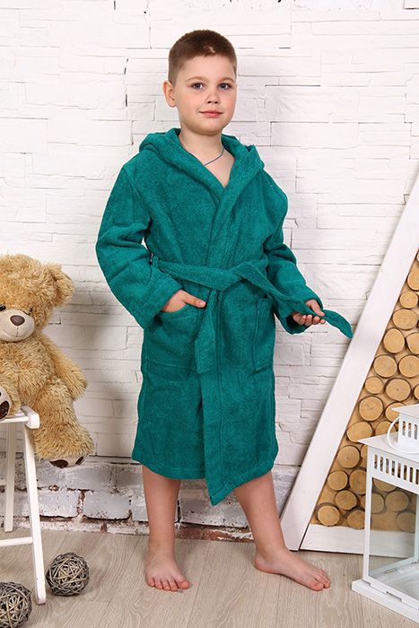 Халат детский махровый Элит с капюшоном, 507-Темно-зеленый