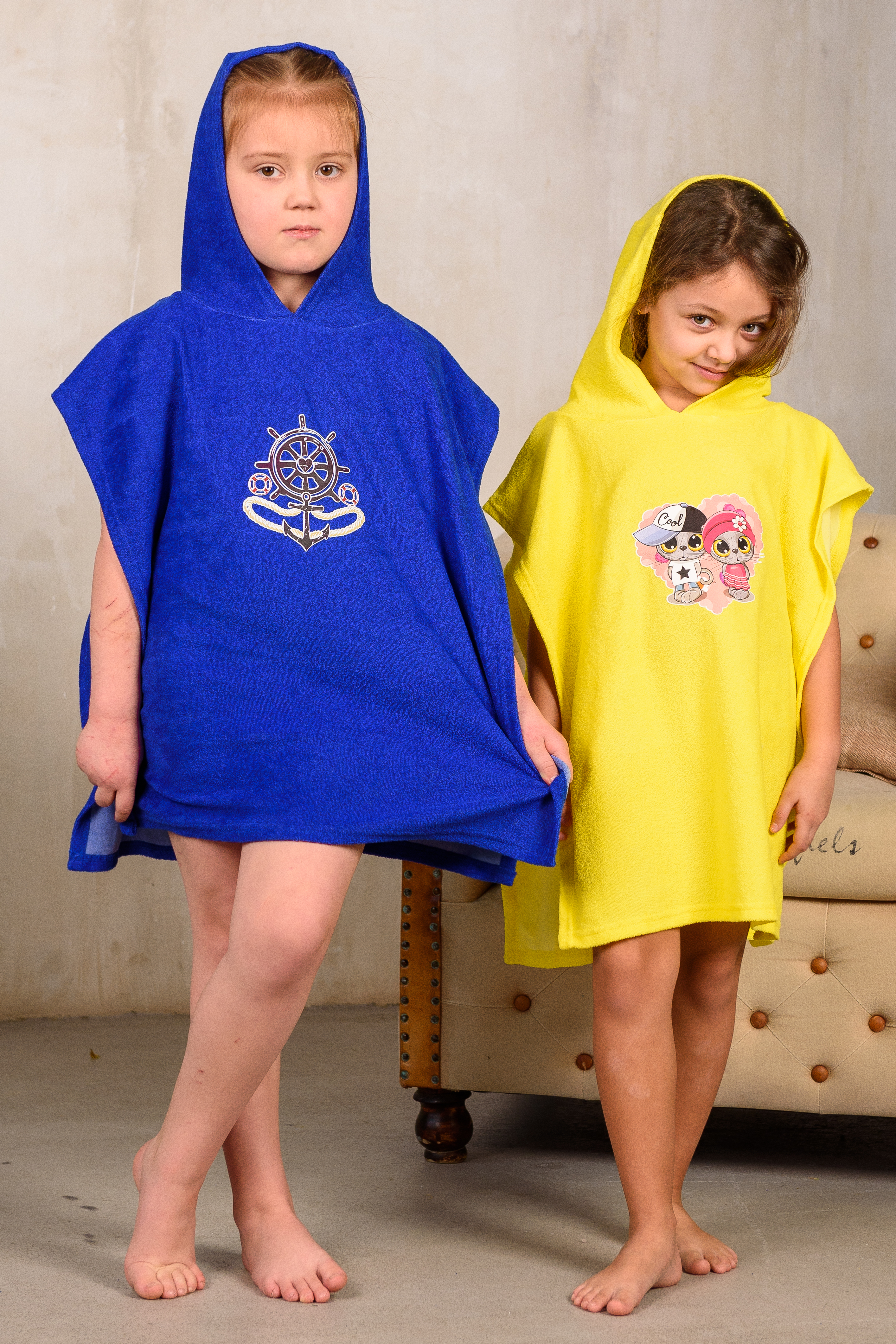 Халат детский Пончо синий якорь
