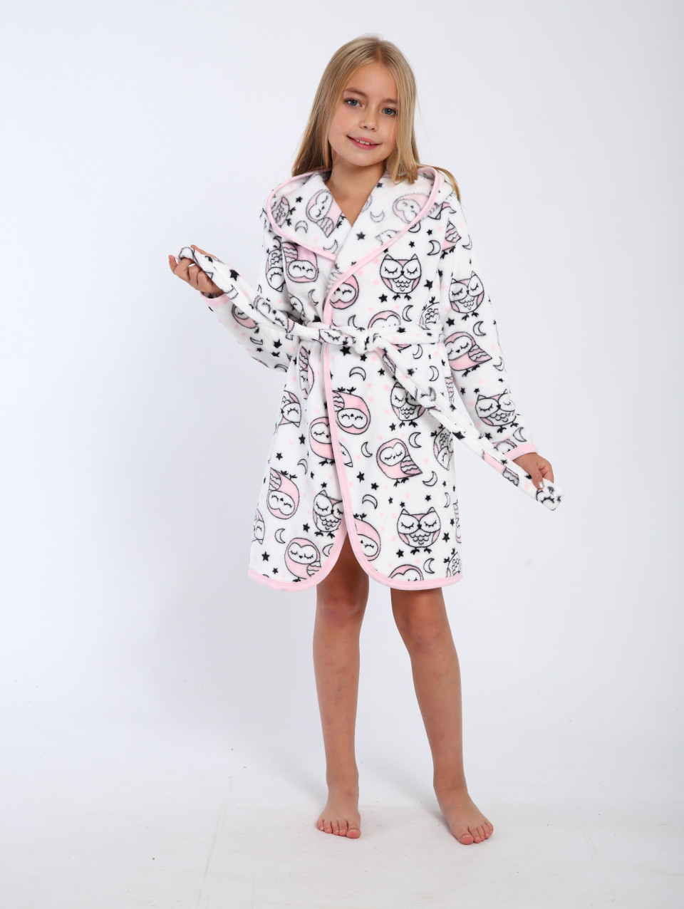 Халат для девочки с капюшоном имеет свободный фасон, стильный халат с поясом для ребенка сделан из 100% полиэстера. Халат для ребенка это повседневный атрибут на каждый день. Детский халат с длинным рукавом отлично подойдет для дома и дачи, душа, бассейна, бани и станет отличным подарком на новый год, день рождения и 8 марта!