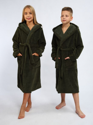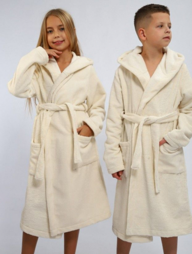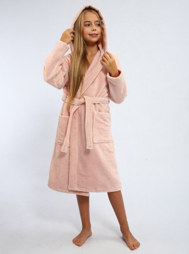 Халат с капюшоном велюр-махра детский КДВМ-ПУДР 402 пудровый