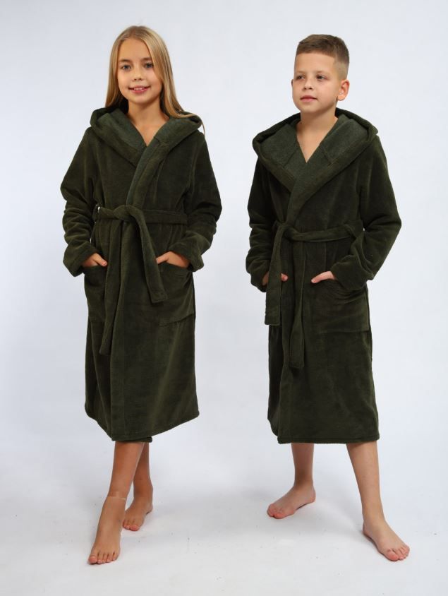 Халат с капюшоном велюр-махра подростковый КПВМ-ХАКИ 354 хаки