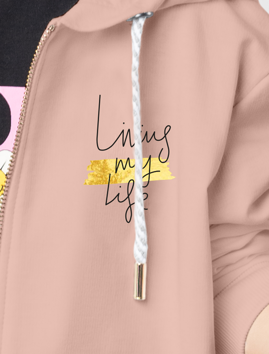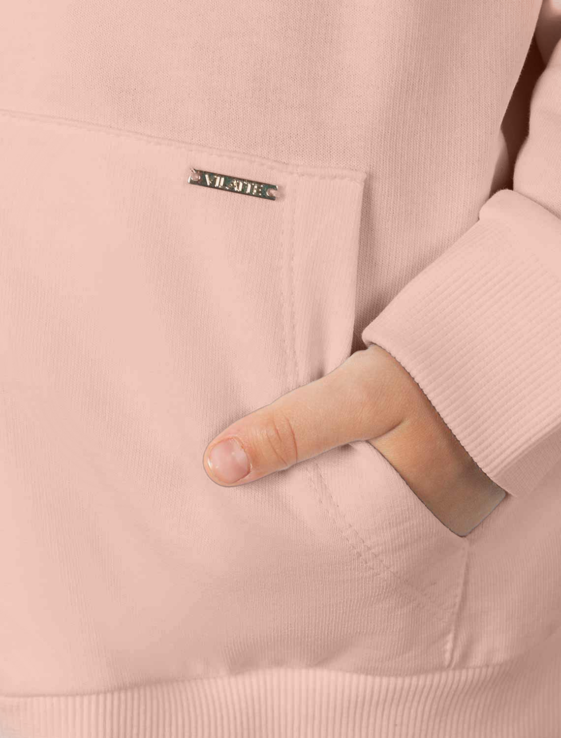 Пудровое худи на молнии с длинными рукавами и спущенной линией плеч сшито из премиального хлопкового футера. Материал отлично поддерживает циркуляцию воздуха, а крой не ограничивает движения. Модель с высококачественной золотистой фурнитурой украшена устойчивым принтом. Идеально в костюме с брюками F44.060