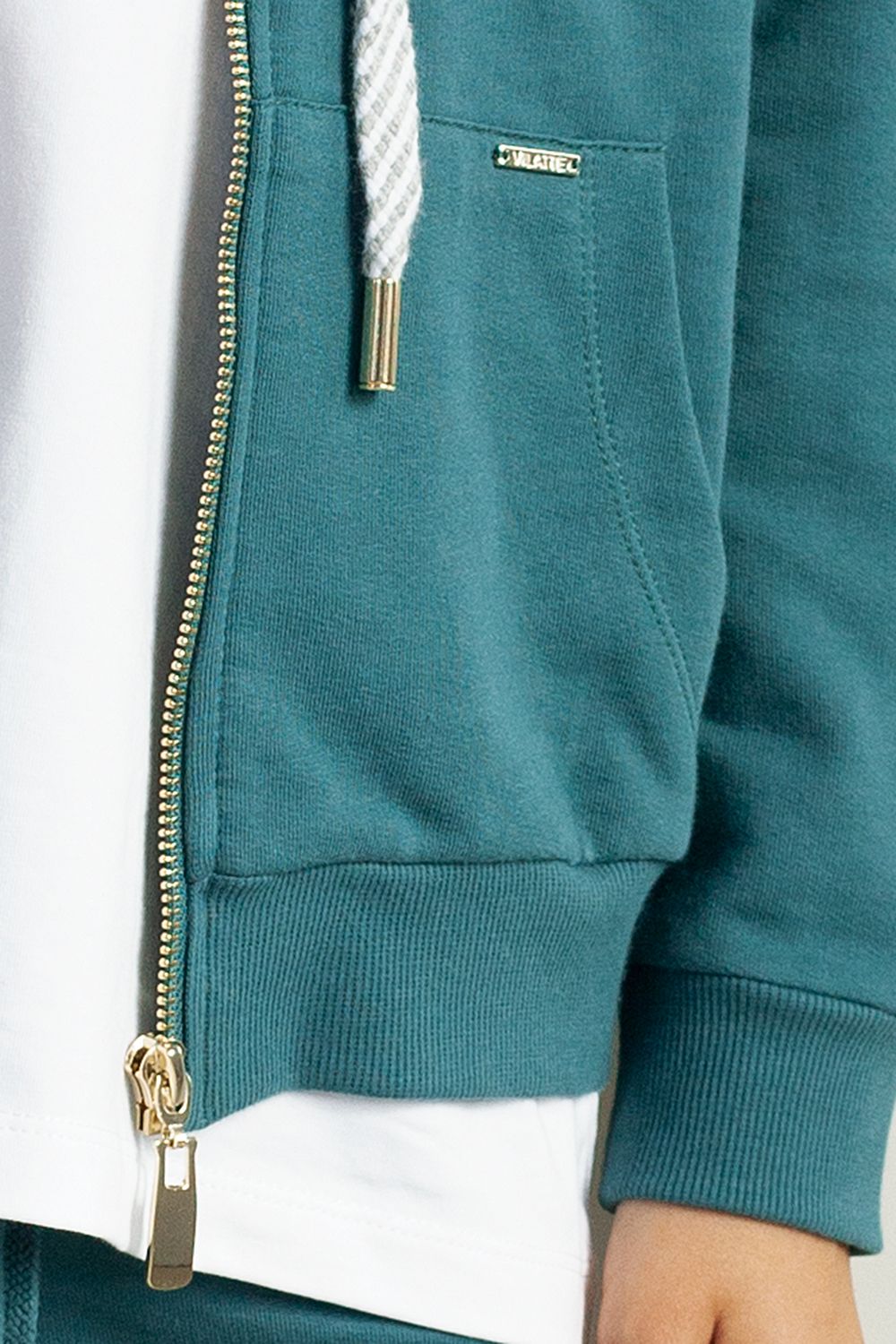 Худи на молнии из премиального футера с золотистой фурнитурой F49.405 полынь
