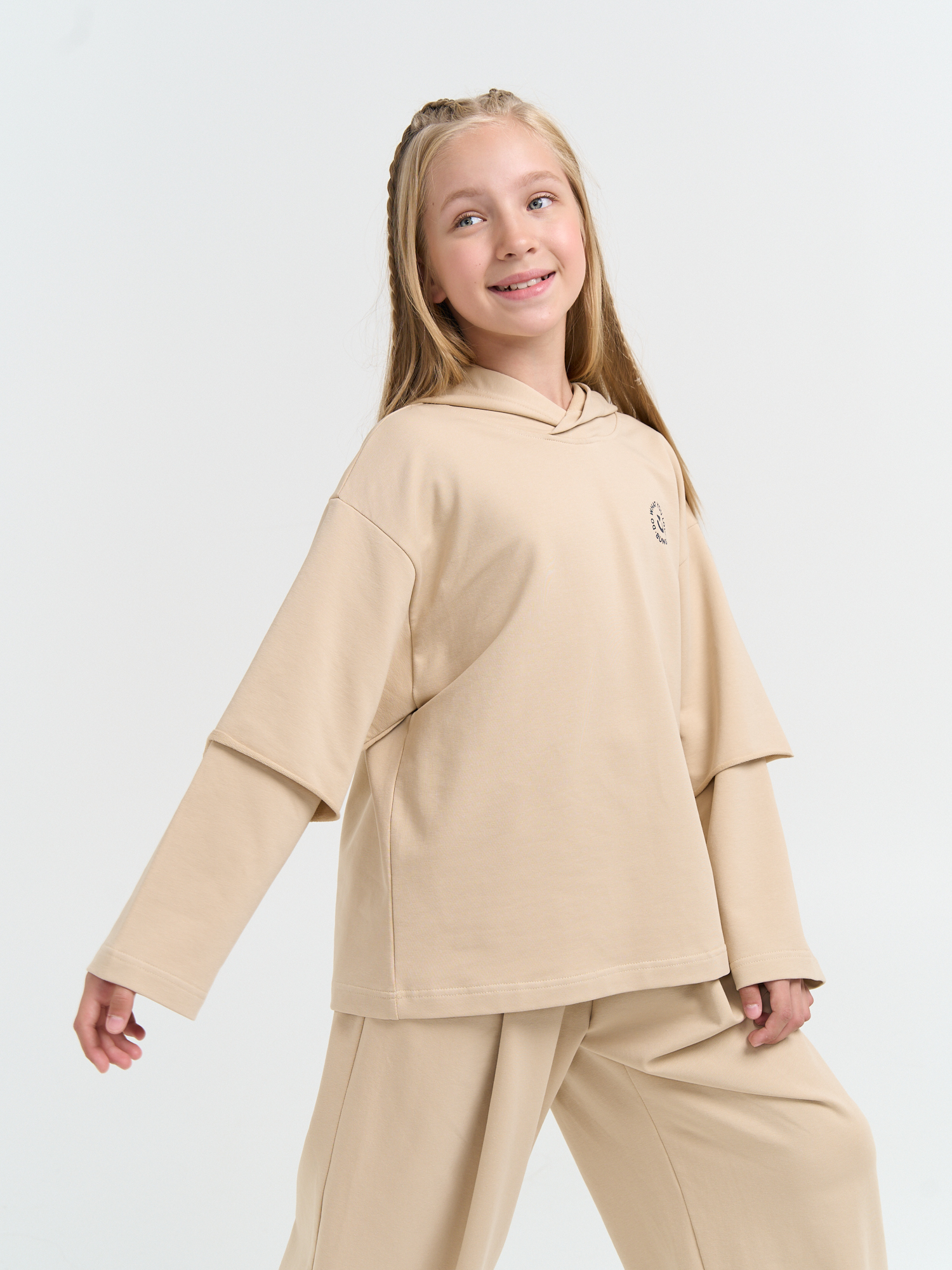 Оверсайз худи из хлопкового трикотажа с двойным рукавом – стильный выбор для подростков, которые любят выделяться!