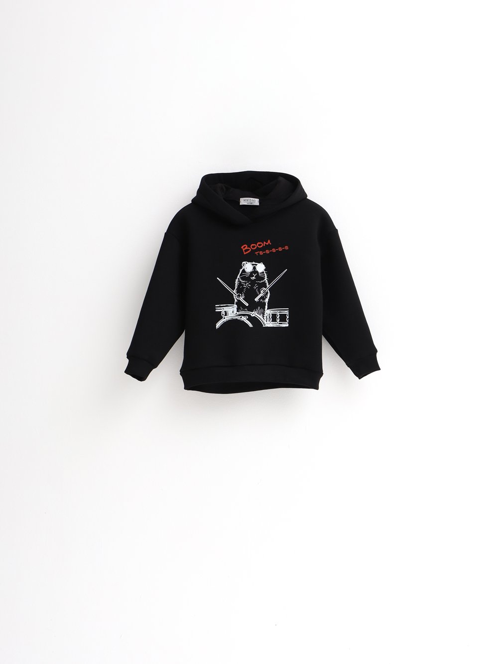 Худи из футера с начесом, свободного силуэта с фирменным принтом спереди. Капюшон с подкладкой.