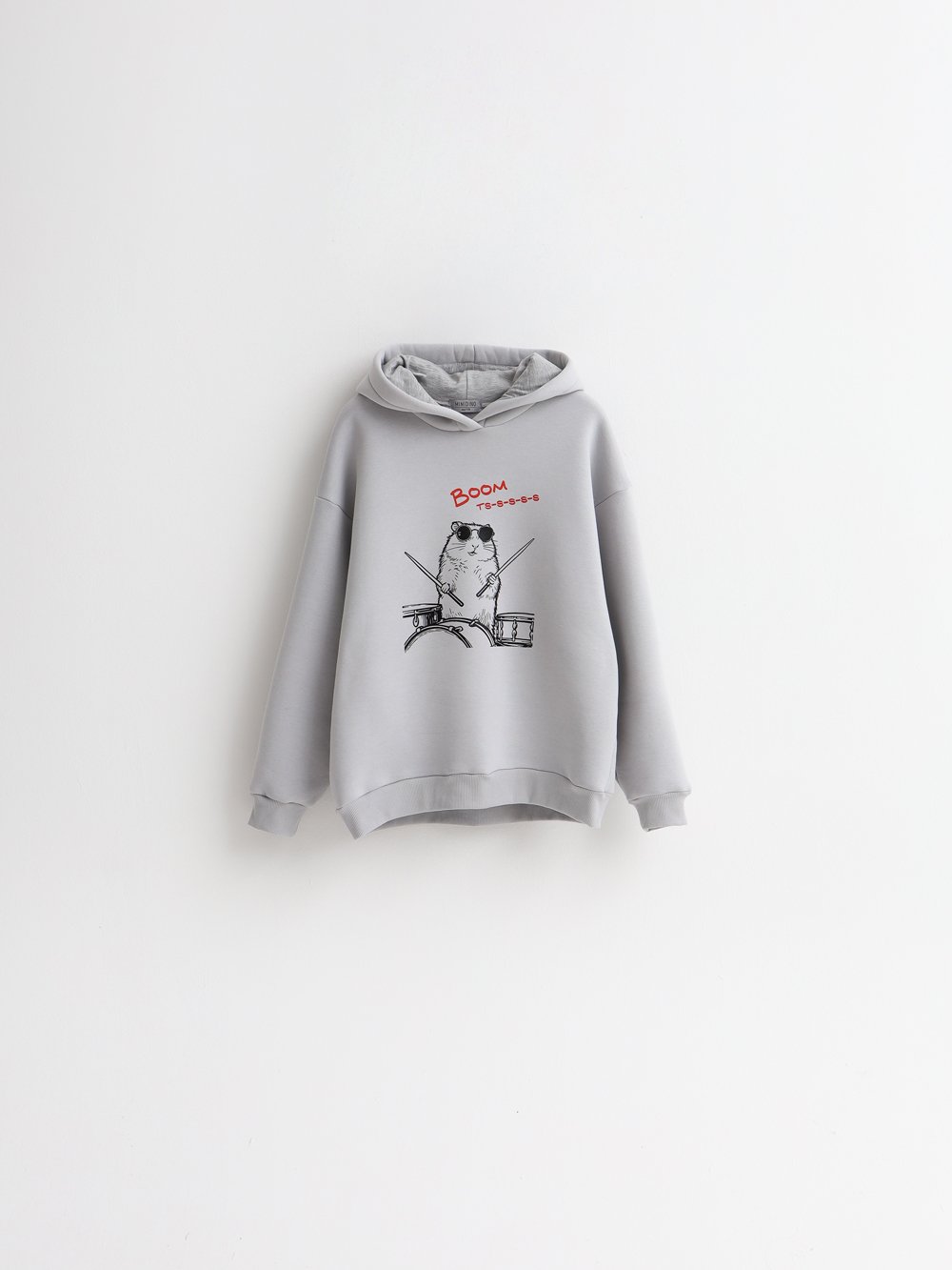 Худи из футера с начесом, свободного силуэта с фирменным принтом спереди. Капюшон с подкладкой.