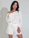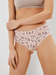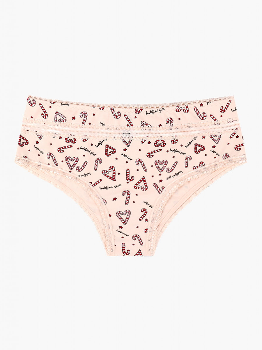 Трусы-шорты из хлопка, с принтом, с кружевными вставками и обрамлением, средней посадки, на мягкой резинке.