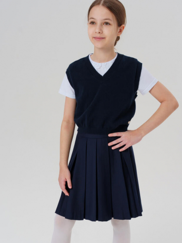 Стильный укороченный тёмно-синий школьный кардиган на пуговицах для девочки подростка от PlayToday — модный и универсальный элемент школьного гардероба, который понравится каждой юной моднице. Модель выполнена в базовом силуэте: классический крой и укороченная длина обеспечивают свободу движений и подчёркивают актуальный стиль подростка.
