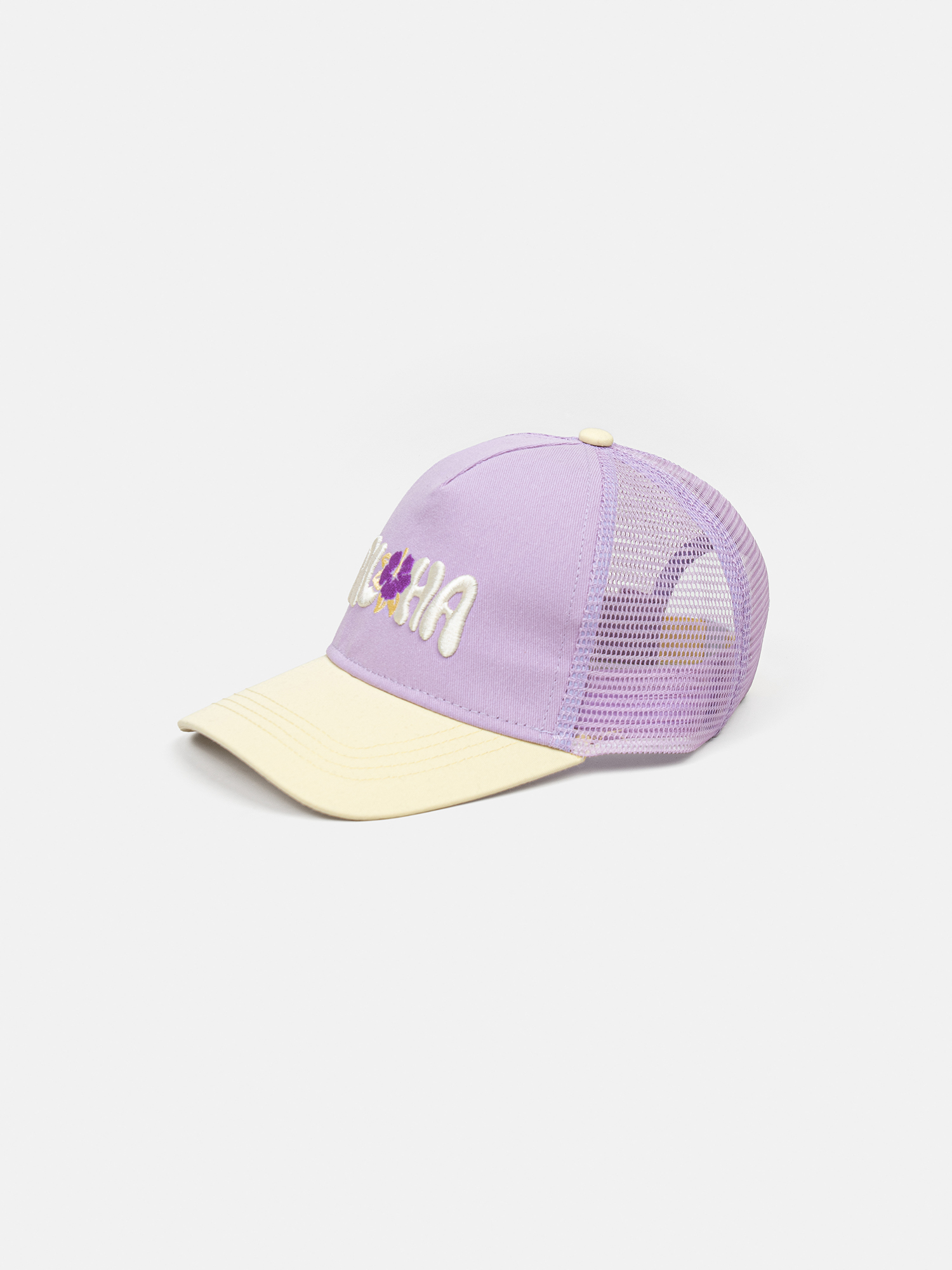 Яркая бейсболка с акцентным принтом-вышивкой.