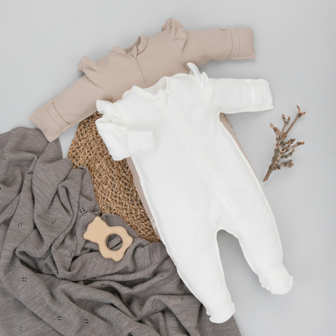 Комбинезон слип на молнии с рюшей "Капучино", 2 шт/уп