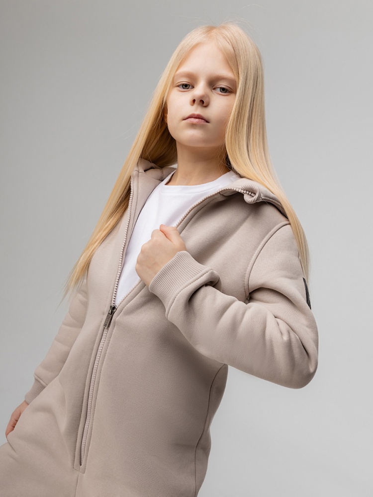 Материал футер трехнитка с начесом Состав 80% хлопок 20% полиэстер высота упаковки, мм 4 Комбинезон для детей. Детали: несъемный капюшон, застежка - молния, манжеты, защитная планка на молнии. Состав: футер трехнитка с начесом 80% хлопок 20% полиэстер