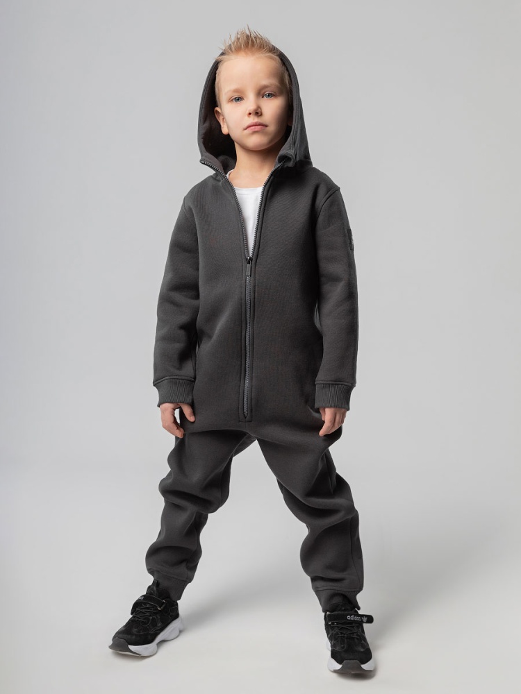 Материал футер трехнитка с начесом Состав 80% хлопок 20% полиэстер высота упаковки, мм 4 Комбинезон для детей. Детали: несъемный капюшон, застежка - молния, манжеты, защитная планка на молнии. Состав: футер трехнитка с начесом 80% хлопок 20% полиэстер