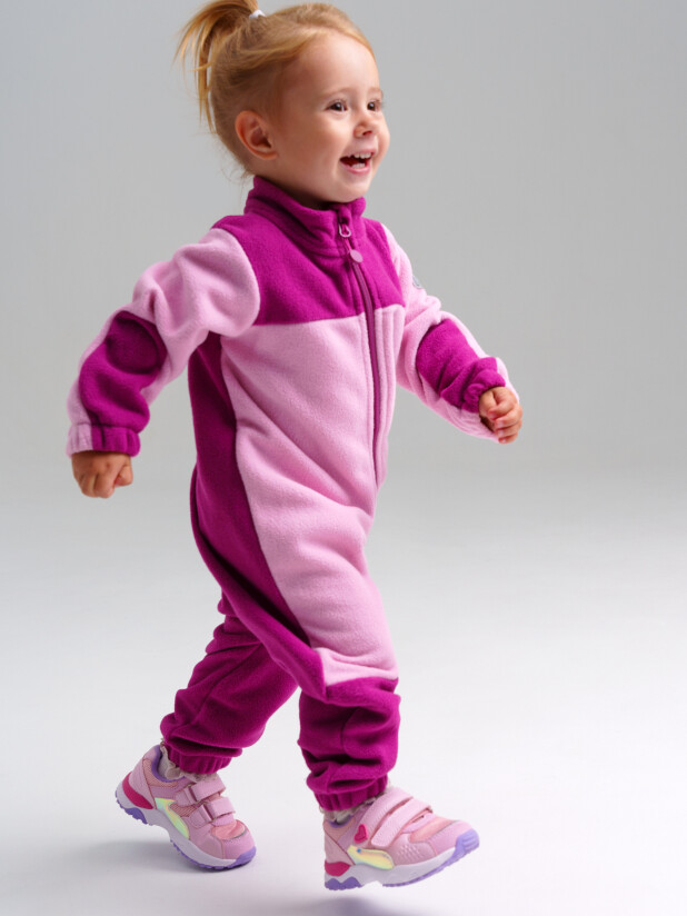 Комбинезон детский из флиса для девочки. Линия NORD ( warm) – для повседневной одежды второго слоя в холодное время года. Плотность флиса 260 г/м2. Воротник-стойка. Манжеты с эластичной окантовкой. Клапан для защиты подбородка при застегивании молнии. Комфорт посадки обеспечен за счет конструктивной резинки на поясе сзади. Флисовая поддева идеально подходит под зимний мембранный костюм или комбинезон, в качестве второго слоя в трехслойной концепции одежды для зимы. Основная функция поддевы из флиса – удерживать тепло и передавать пар от первого слоя – термобелья, оставаясь сухим.