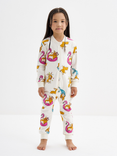Комбинезон пижама "корги" для девочки на молнии из интерлока