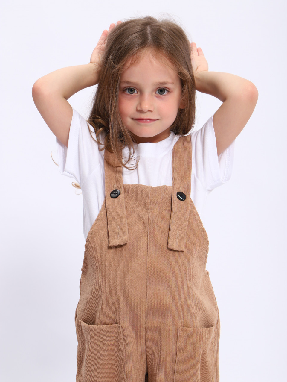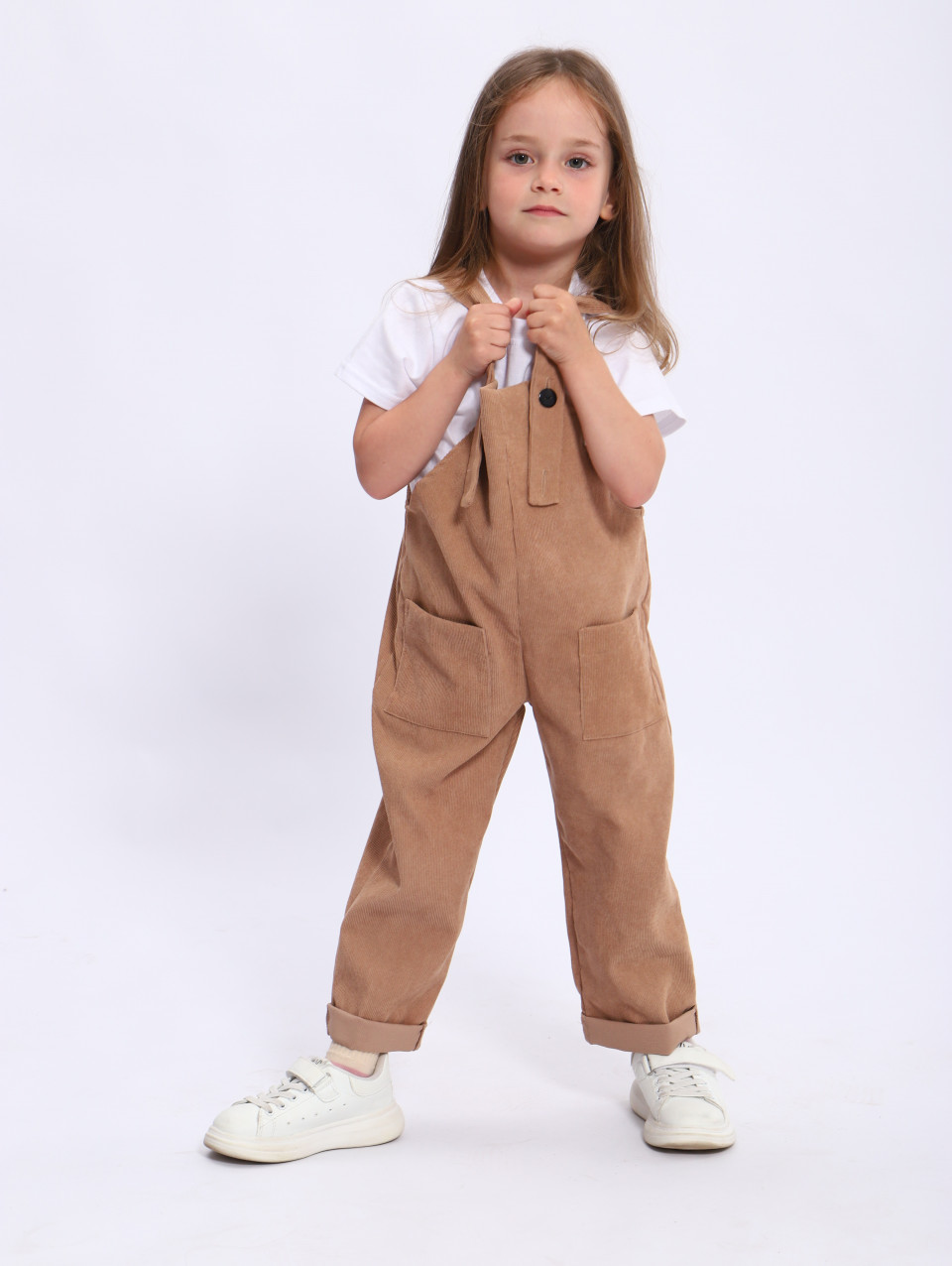 Стильный вельветовый комбинезон для девочки. Детский комбинезон с регулируемыми бретелями на пуговицах. Полукомбинезон прямого кроя, дополнен накладным карманами спереди. Комфортный комбинезон из качественного вельвета - тренд 2024 года, отлично подойдет на каждый день, на прогулку, в сад, в школу, для дачи, а также в качестве домашней одежды. Полукомбинезон для девочек - прекрасный повседневный вариант для юных модниц, подходит для весенне-летнего периода, также данную модель можно носить зимой и осенью.