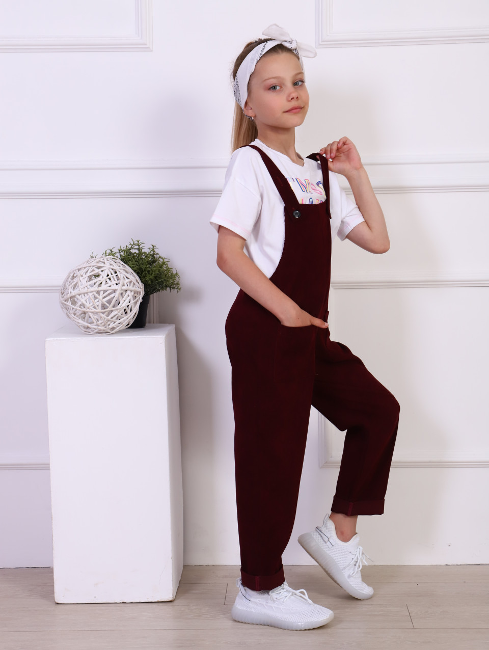 Стильный вельветовый комбинезон для девочки. Детский комбинезон с регулируемыми бретелями на пуговицах. Полукомбинезон прямого кроя, дополнен накладным карманами спереди. Комфортный комбинезон из качественного вельвета - тренд 2022 года, отлично подойдет на каждый день, на прогулку, в сад, в школу, для дачи, а также в качестве домашней одежды. Полукомбинезон для девочек - прекрасный повседневный вариант для юных модниц, подходит для весенне-летнего периода, также данную модель можно носить зимой и осенью.