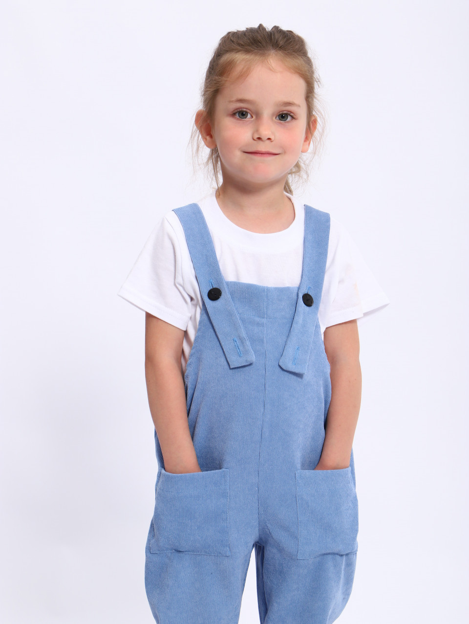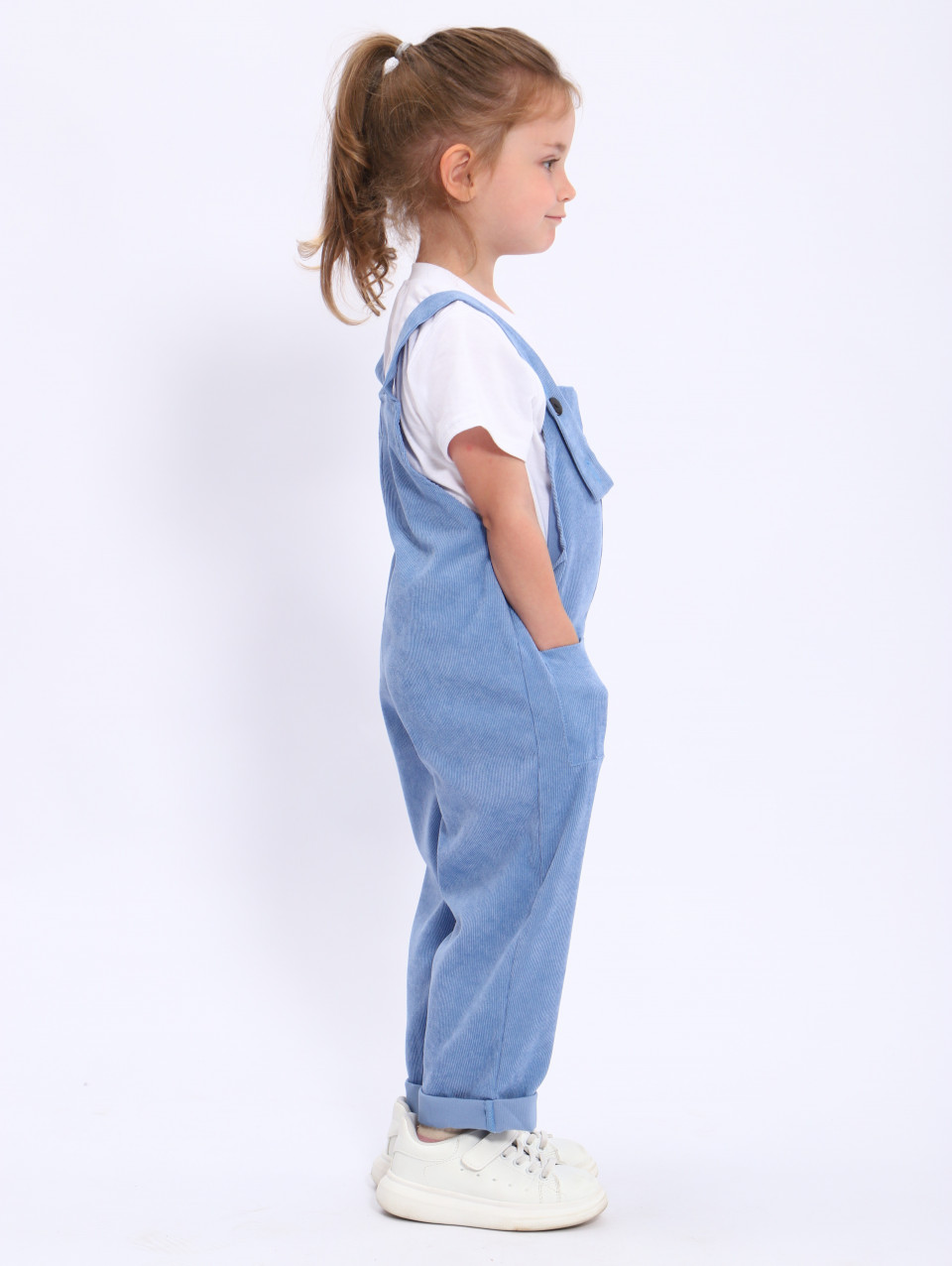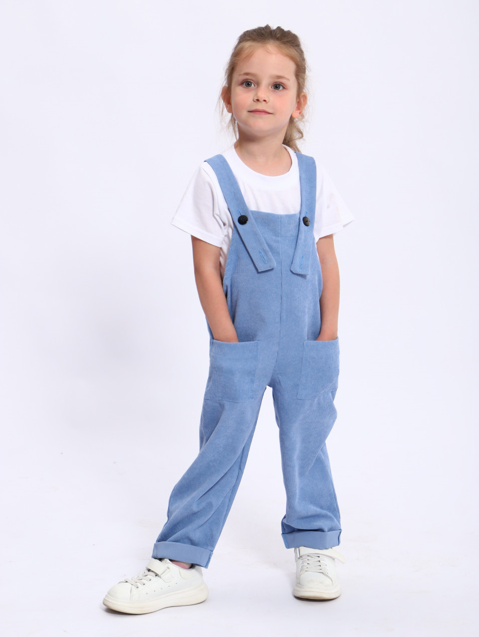 Стильный вельветовый комбинезон для девочки. Детский комбинезон с регулируемыми бретелями на пуговицах. Полукомбинезон прямого кроя, дополнен накладным карманами спереди. Комфортный комбинезон из качественного вельвета - тренд 2024 года, отлично подойдет на каждый день, на прогулку, в сад, в школу, для дачи, а также в качестве домашней одежды. Полукомбинезон для девочек - прекрасный повседневный вариант для юных модниц, подходит для весенне-летнего периода, также данную модель можно носить зимой и осенью.