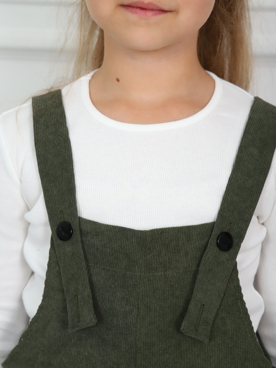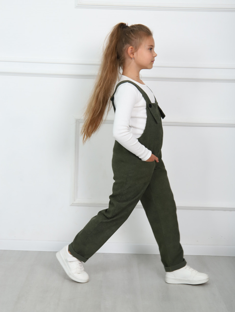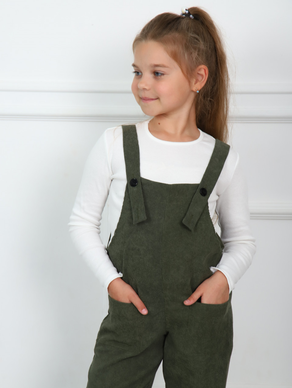 Стильный вельветовый комбинезон для девочки. Детский комбинезон с регулируемыми бретелями на пуговицах. Полукомбинезон прямого кроя, дополнен накладным карманами спереди. Комфортный комбинезон из качественного вельвета - тренд 2023 года, отлично подойдет на каждый день, на прогулку, в сад, в школу, для дачи, а также в качестве домашней одежды. Полукомбинезон для девочек - прекрасный повседневный вариант для юных модниц, подходит для весенне-летнего периода, также данную модель можно носить зимой и осенью.