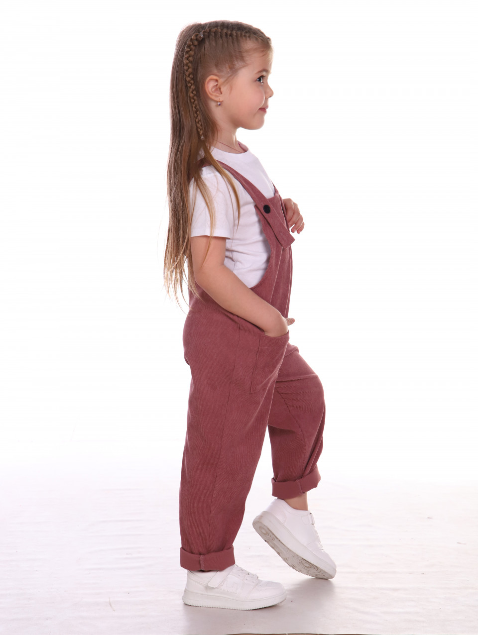 Стильный вельветовый комбинезон для девочки. Детский комбинезон с регулируемыми бретелями на пуговицах. Полукомбинезон прямого кроя, дополнен накладным карманами спереди. Комфортный комбинезон из качественного вельвета, отлично подойдет на каждый день, на прогулку, в сад, в школу, для дачи, а также в качестве домашней одежды. Полукомбинезон для девочек - прекрасный повседневный вариант для юных модниц, подходит для весенне-летнего периода, также данную модель можно носить зимой и осенью.