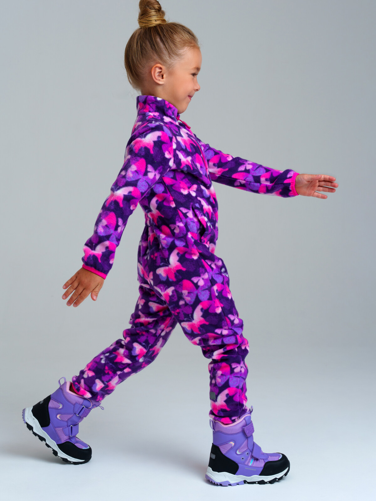Комбинезон детский из флиса для девочки. Линия NORD ( warm) – для повседневной одежды второго слоя в холодное время года. Плотность флиса 260 г/м2. Воротник-стойка. Манжеты с эластичной окантовкой. Клапан для защиты подбородка при застегивании молнии. Комфорт посадки обеспечен за счет конструктивной резинки на поясе сзади. Флисовая поддева идеально подходит под зимний мембранный костюм или комбинезон, в качестве второго слоя в трехслойной концепции одежды для зимы. Основная функция поддевы из флиса – удерживать тепло и передавать пар от первого слоя – термобелья, оставаясь сухим.