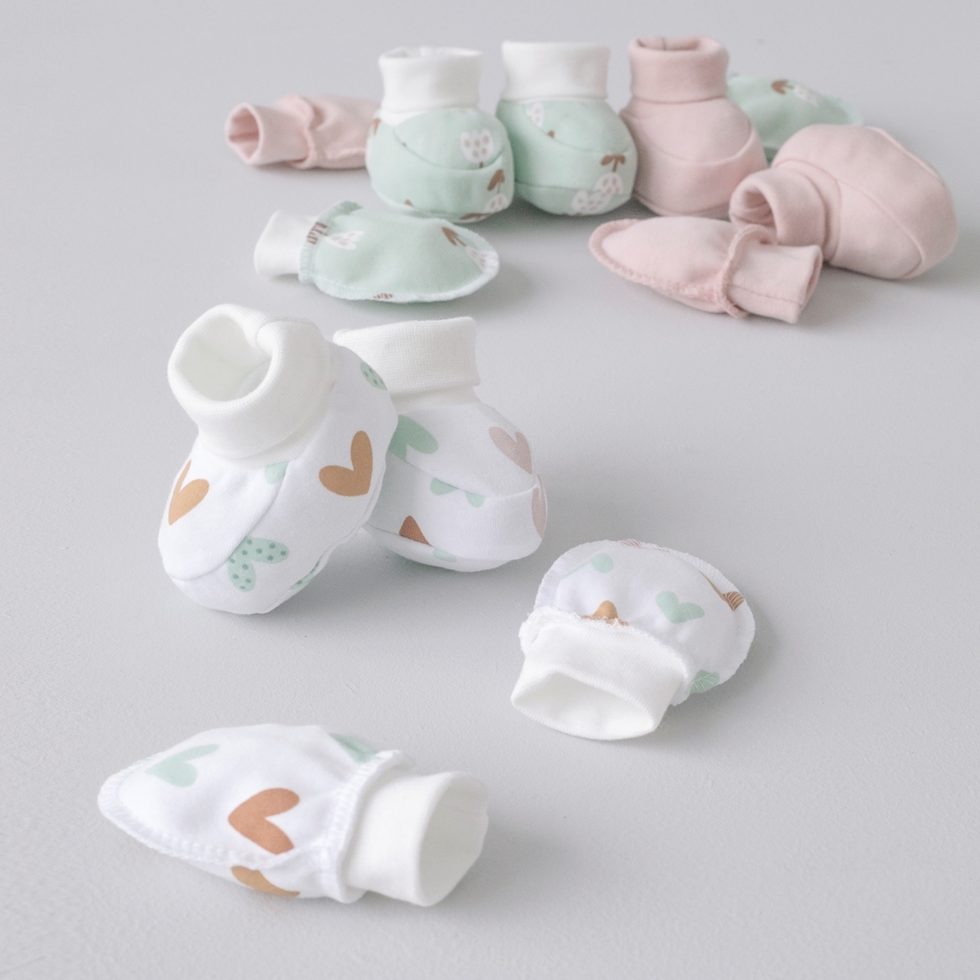 Комплект варежки анти-царапки и пинетки "Первые Цветы", 3+3