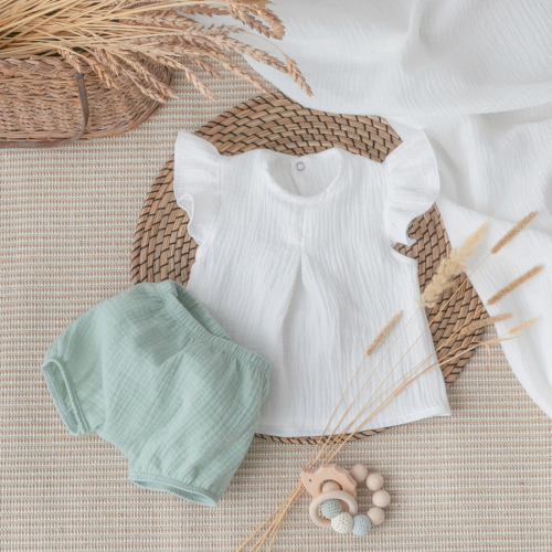Комплект топ+трусики буфы "Муслин", полынь, лето