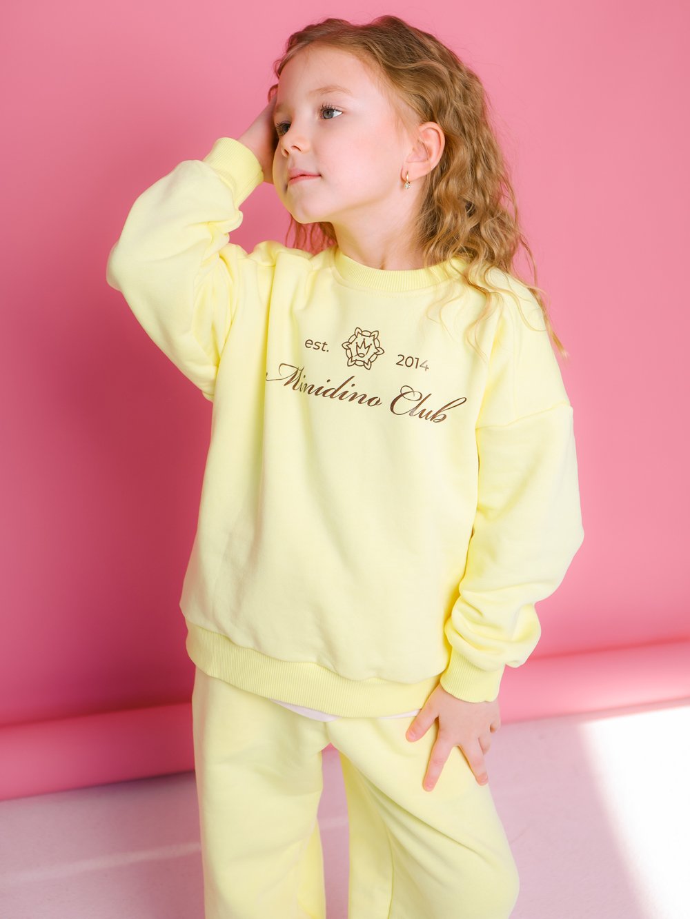 Комплект из свитшота и брюк. Свитшот over size со спущенным плечом. Манжеты, горловина и низ изделия обработаны кашкорсе. На полочке объемное нанесение (шелкография).